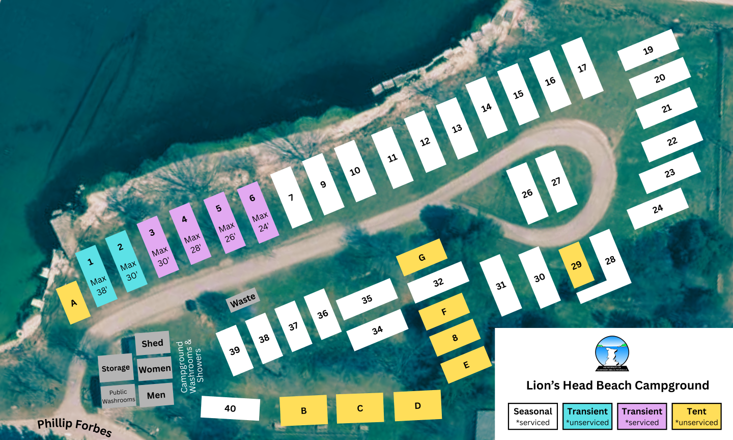 Thank you for booking with us. We look forward to welcoming you to the Lion's Head Beach Park Campground this season.